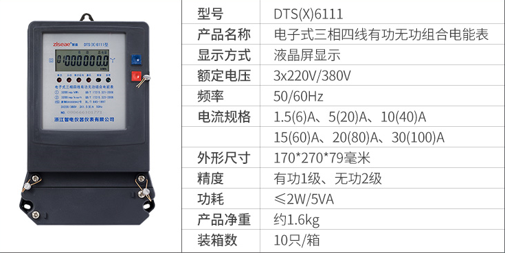 DTS(X)6111、DSS(X)6111型三相電子式有功無功組合電能表(以下簡稱電能表),是為了適應(yīng)電網(wǎng)改造設(shè)計開發(fā)的有功、無功組合式電能表。它具有較高的準(zhǔn)確度和可行性。產(chǎn)品制造標(biāo)準(zhǔn)符合GB/T17215.321-2008《1級和2級靜止式交流有功電能表》、GB/T17215.323-2008、DL/T614-1997《多功能電能表》、DL/T645-1997《多功能電能表通信規(guī)約》等電力行業(yè)標(biāo)準(zhǔn)對三相靜止式電能表全部技術(shù)要求,是對需要進行無功電量考核的企業(yè)、變電站或電廠理想的選擇,亦適合輸配電或配網(wǎng)自動化用表。本產(chǎn)品可供計量參比頻率為50Hz電網(wǎng)中的三相交流有功和無功電能,并能進行正、反向電能計量和紅外及RS485通訊功能。其特點是精度高、可靠性好、寬負(fù)荷、低功耗、誤差曲線平直、抗干擾能力強。