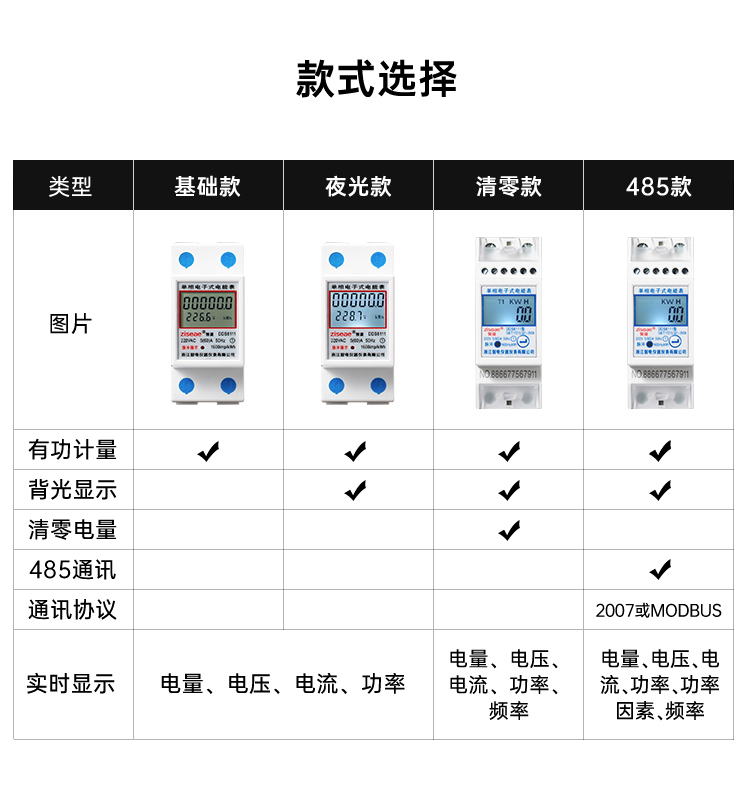 2、采用高品質(zhì)計(jì)度器顯示累計(jì)電量(6+1位),顯示清晰鮮艷直讀性好。