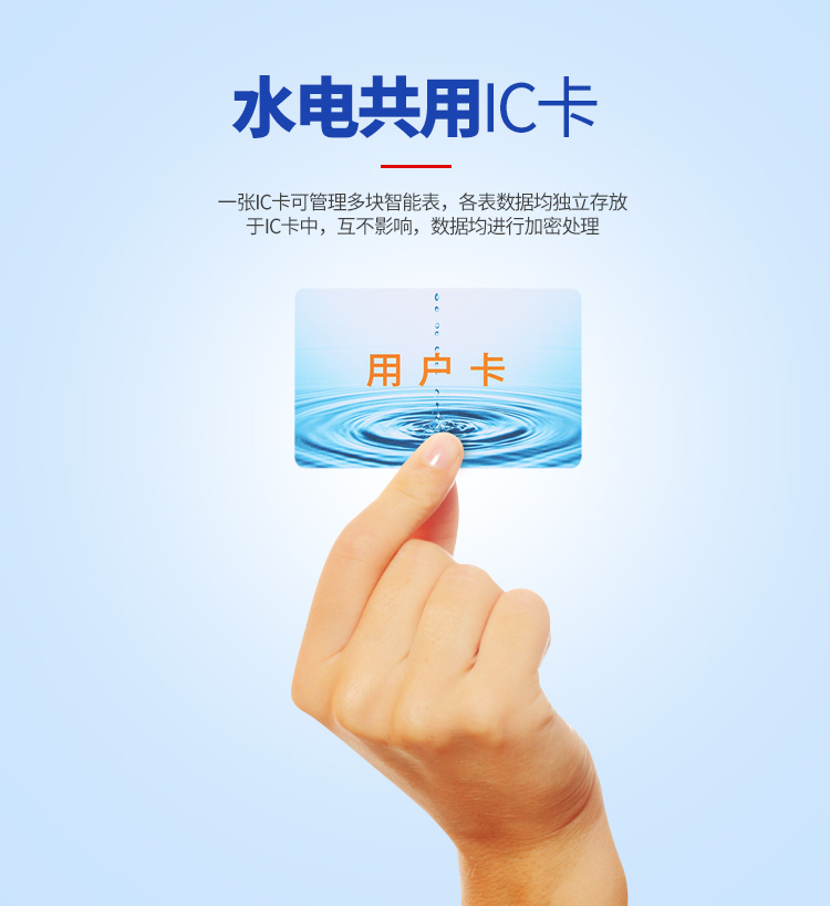 4.一卡通功能:若同一用戶安裝兩只以上水表或同時安裝我公司的水表、電表、燃?xì)獗淼?,多只智能表可共用一張卡管理,使用方便?/span>